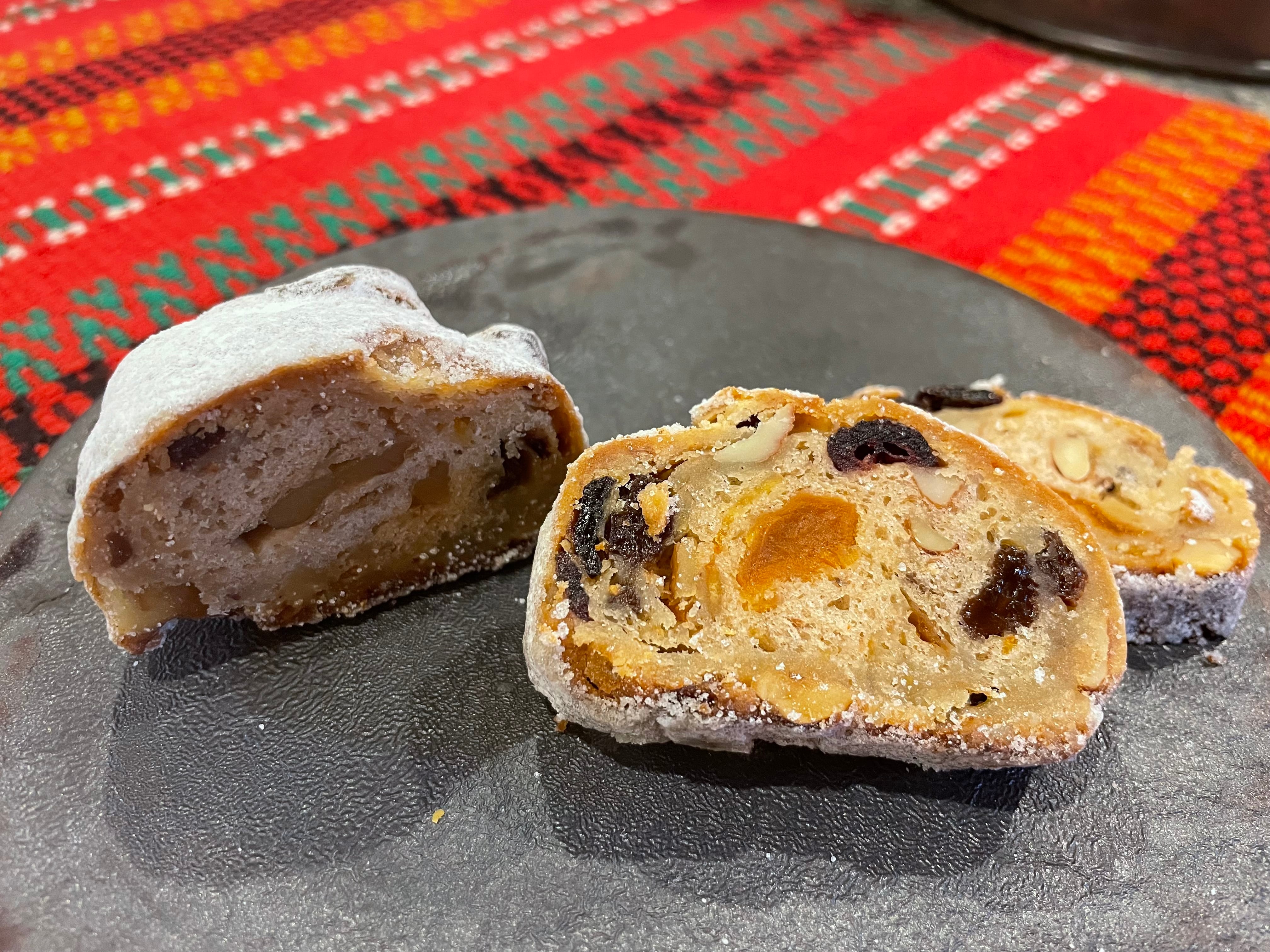 クリスマスシーズンに欠かせないドイツの伝統的なお菓子です。しっとりとした食感と香り豊かなドライフルーツが特徴です。